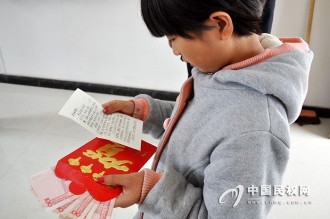 小雪莲收到了民权党员微平台与民权爱心家园志愿者服务队捐赠的现金