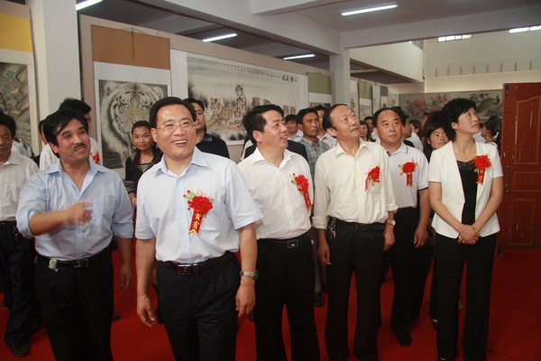 开幕式结束后,参加开幕式的领导一起参观了画展。